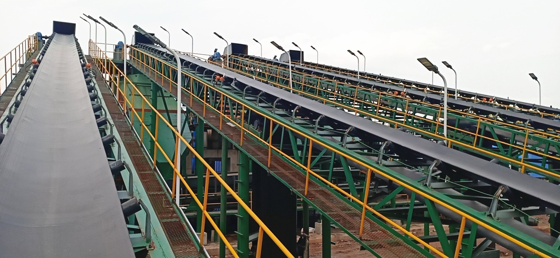 核心技術(shù):破解運(yùn)輸場景痛點(diǎn)(1)長距離運(yùn)輸系統(tǒng):采用動(dòng)態(tài)分析技術(shù),精準(zhǔn)校核四大核心工況,避免堵轉(zhuǎn)、打滑;使用輕量化防腐桁架,現(xiàn)場零焊接,安裝效率提升30%,維護(hù)效率提高50%。(2)關(guān)鍵部件:滾筒經(jīng)有限元優(yōu)化,壽命超30000小時(shí);托輥含多項(xiàng)專利設(shè)計(jì),阻力小、密封好,配備緩沖裝置減少磨損;頭尾組合制動(dòng)系統(tǒng)有效應(yīng)對(duì)堆堵、飛車、倒轉(zhuǎn)等風(fēng)險(xiǎn)。(3)智能化電控:集成六大子系統(tǒng),依托光纖環(huán)網(wǎng)實(shí)現(xiàn)遠(yuǎn)距離實(shí)時(shí)通訊(延遲<0.1秒),具備8類保護(hù)與音視頻監(jiān)控閉環(huán)管理,支持調(diào)速與功率平衡,節(jié)能15%~20%。