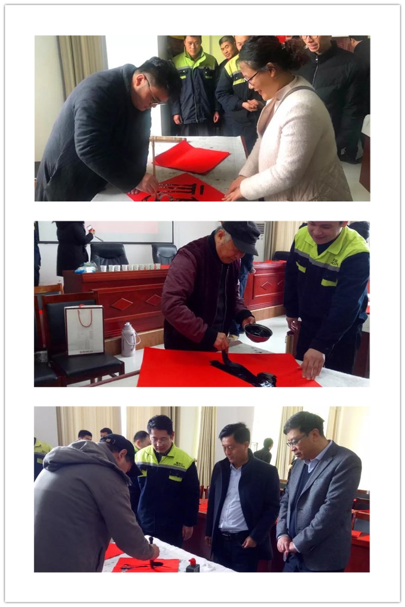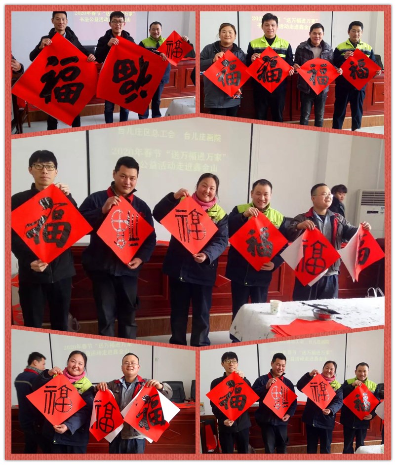 新春將至,為深入宣傳習(xí)近平新時代中國特色社會主義思想和黨的十九屆四中全會精神,弘揚中華優(yōu)秀傳統(tǒng)文化,增強職工的幸福感,營造文明、健康、祥和的節(jié)日氛圍。1月10日上午,臺兒莊區(qū)總工會、臺兒莊畫院組織優(yōu)秀書法家走進(jìn)鑫金山,開展2020年春節(jié)“送萬福進(jìn)萬家”書法公益活動,為鑫金山員工們現(xiàn)場書寫“福”字和春聯(lián),送上了歡樂和春節(jié)祝福。