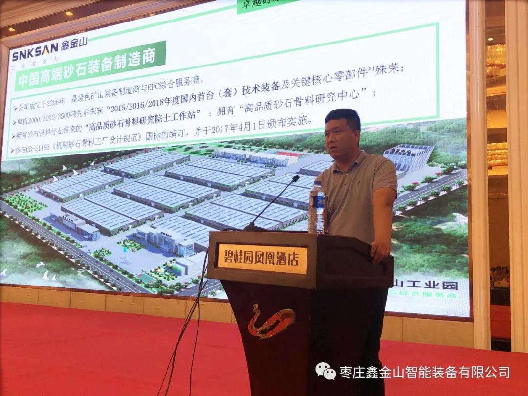 大會上,鑫金山華北區(qū)域總監(jiān)童德成作了題為《綠色智能精品砂石骨料生產線建設方案》的專題報告演講。他首先對公司產品、技術與核心優(yōu)勢進行了介紹,隨后重點分享了年產1500萬噸砂石骨料生產線建設方案和精品制砂系統(tǒng),并以數(shù)十個EPCO項目為案例,給大家展示了鑫金山設備和技術在礦山破碎領域的成功應用。
