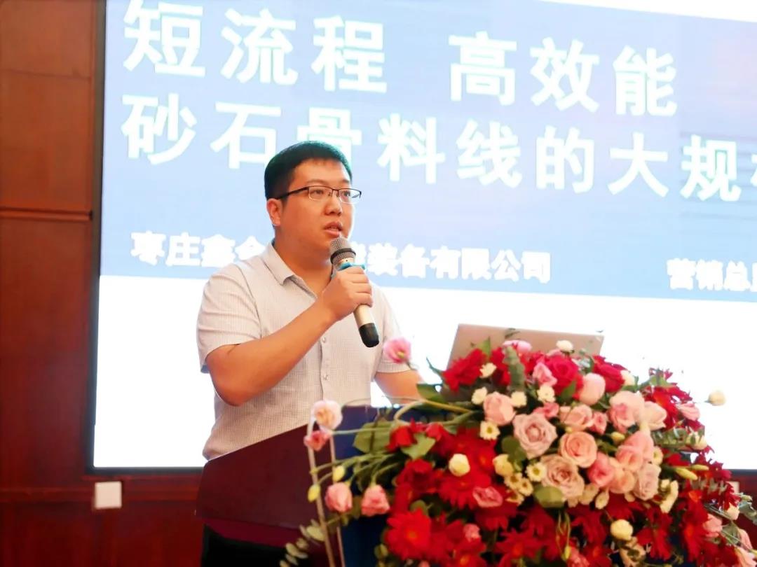 在本次論壇上,棗莊鑫金山智能裝備有限公司胡振霖總監(jiān)作了《高效能、短流程砂石骨料生產(chǎn)線的大規(guī)模應(yīng)用》的主題報(bào)告。詳細(xì)介紹了制備高品質(zhì)砂石骨料的關(guān)鍵技術(shù)以及工藝,并介紹了鑫金山高效能短流程綠色骨料線工藝流程短、高效高產(chǎn)、粒型優(yōu)、低能耗、石粉可控的5大核心優(yōu)勢(shì)。
