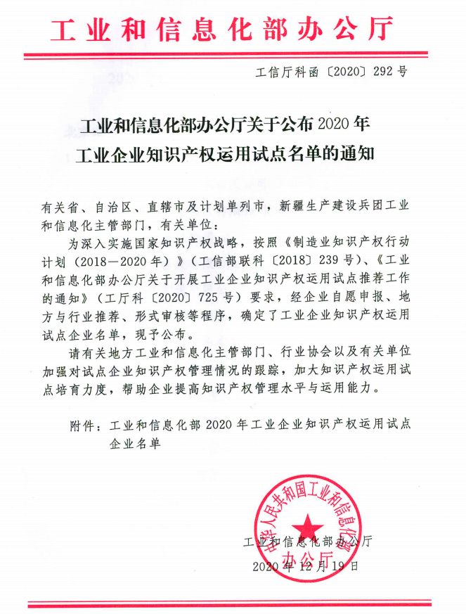 導(dǎo)讀: 這是工信部為貫徹落實(shí)國家知識(shí)產(chǎn)權(quán)戰(zhàn)略,按照《制造業(yè)知識(shí)產(chǎn)權(quán)行動(dòng)計(jì)劃(2018-2020年)》(工信部聯(lián)科〔2018〕239號(hào))、《工業(yè)和信息化部辦公廳關(guān)于開展工業(yè)企業(yè)知識(shí)產(chǎn)權(quán)運(yùn)用試點(diǎn)推