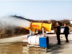通過高壓離子霧化和超聲波霧化,可產(chǎn)生1μm~100μm的超細干霧;超細干霧顆粒細密,充分增加與粉塵顆粒的接觸面積,水霧顆粒與粉塵顆粒碰撞并凝聚,形成團聚物,團聚物不斷變大變重,直至最后自然沉降,達到消除粉塵的目的;所產(chǎn)生的干霧顆粒,30%~40%粒徑在2.5μm以下,對大氣細微顆粒污染的防治效果明顯。