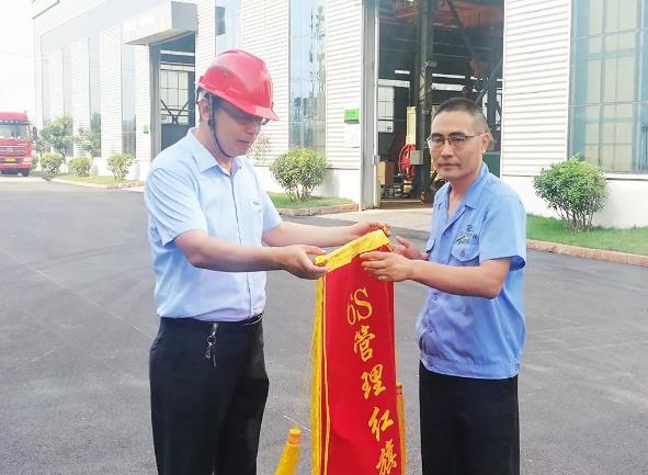 在半年總結(jié)6S表彰時(shí),陳克峰所在的焊接工段第一名,授獎授旗。