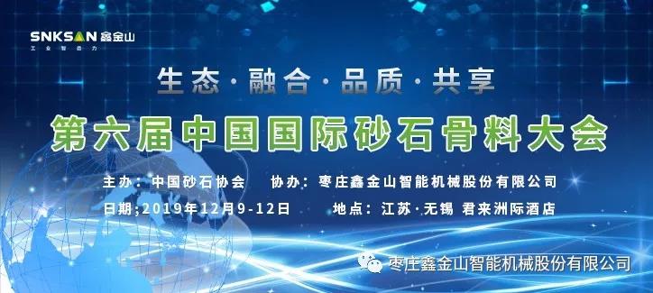 導(dǎo)讀:為加強各國砂石骨料行業(yè)的交流與合作,推動砂石骨料工業(yè)的轉(zhuǎn)型升級、綠色發(fā)展和高質(zhì)量發(fā)展,打造全球砂石骨料工業(yè)的命運共同體。由中國砂石協(xié)會主辦的第六屆中國國際砂石骨料大會將于12月9日-12日在江蘇無錫召開。棗莊鑫金山智能機械股份有限公司作為協(xié)辦單位,誠邀您蒞臨。