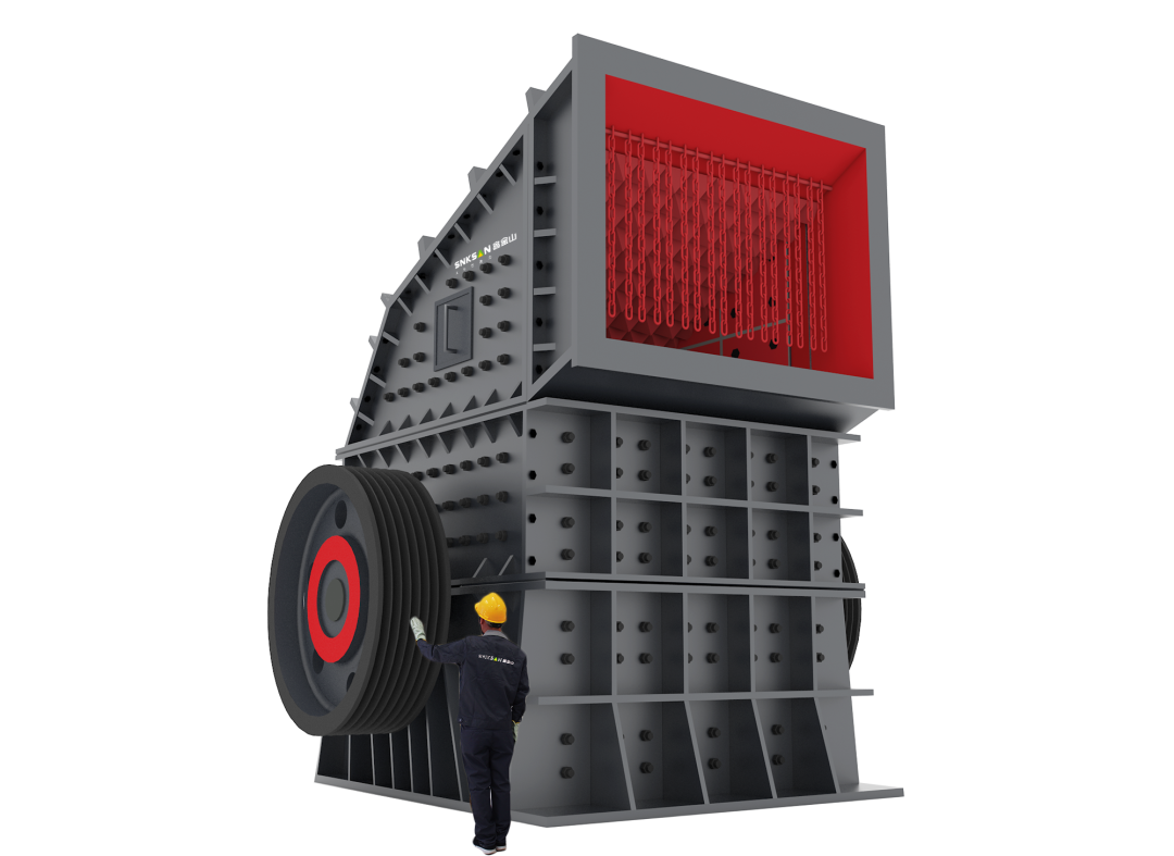 該生產(chǎn)線主機選用鑫金山專利產(chǎn)品——新型單段重錘反擊破,作為中軟巖礦山破碎領(lǐng)域的首選設(shè)備,具有成品率高、能耗低、產(chǎn)量大、石粉少等特點,所產(chǎn)骨料均為規(guī)則圓整、粒型優(yōu)質(zhì)的多面體狀,抗壓強度大,為國標(biāo)I類骨料。由于石料一次成型,大幅精簡了工藝流程,還可有效地控制生產(chǎn)線中的石粉含量,從系統(tǒng)運行角度進一步降低了能耗以及運營成本,其節(jié)能水平和產(chǎn)能均位于行業(yè)前列。