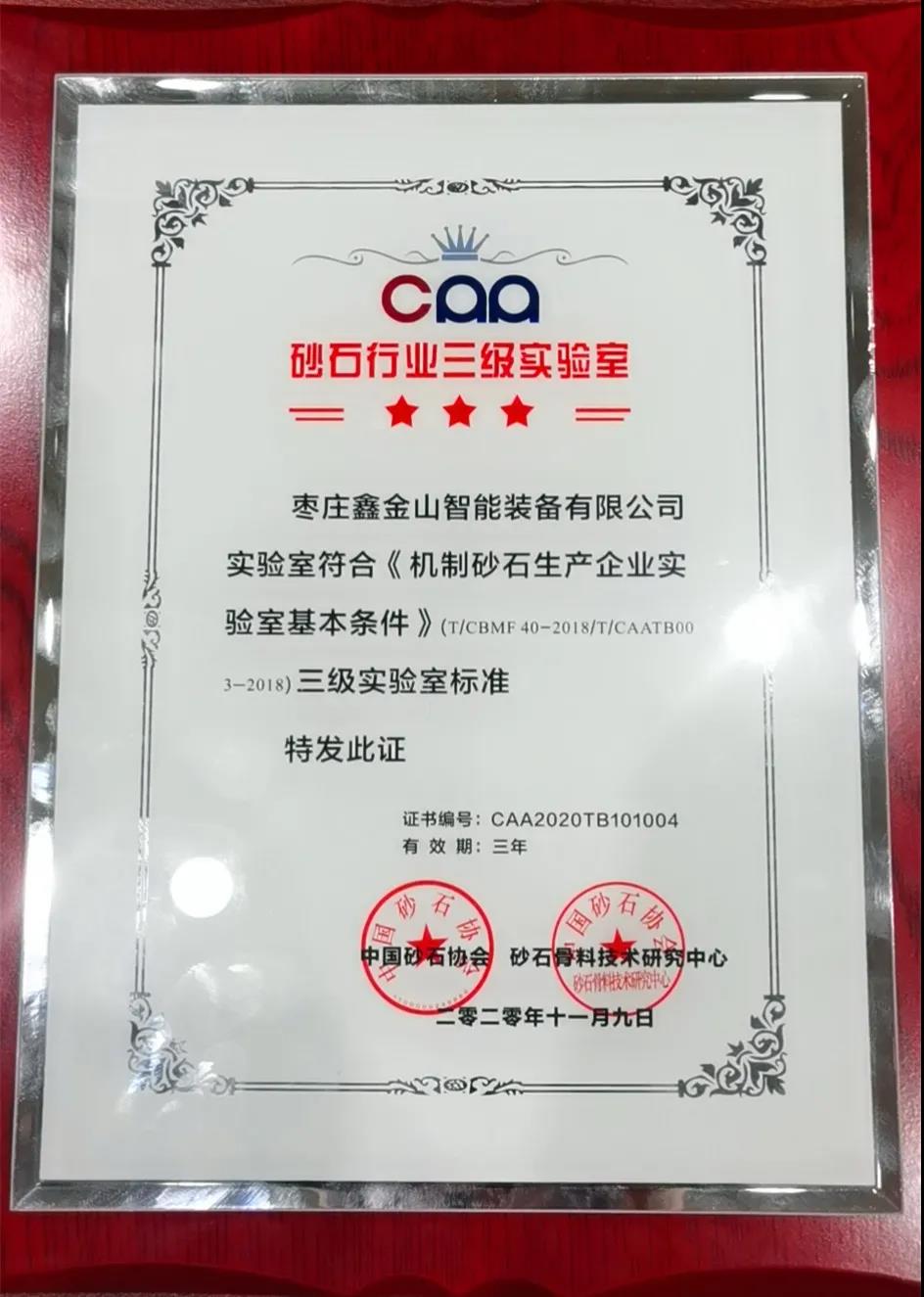 14日當(dāng)天,為表彰優(yōu)秀、樹立典范,引領(lǐng)和推動(dòng)行業(yè)向著更高層次發(fā)展。在中國砂石協(xié)會(huì)年會(huì)現(xiàn)場進(jìn)行了一系列盛大的頒獎(jiǎng)儀式。儀式上,棗莊鑫金山智能裝備有限公司實(shí)驗(yàn)室被評(píng)定為砂石行業(yè)三級(jí)(zui高等級(jí))實(shí)驗(yàn)室,董事長孫中巖入選綠色礦山建設(shè)專家?guī)鞂<摇?/p>