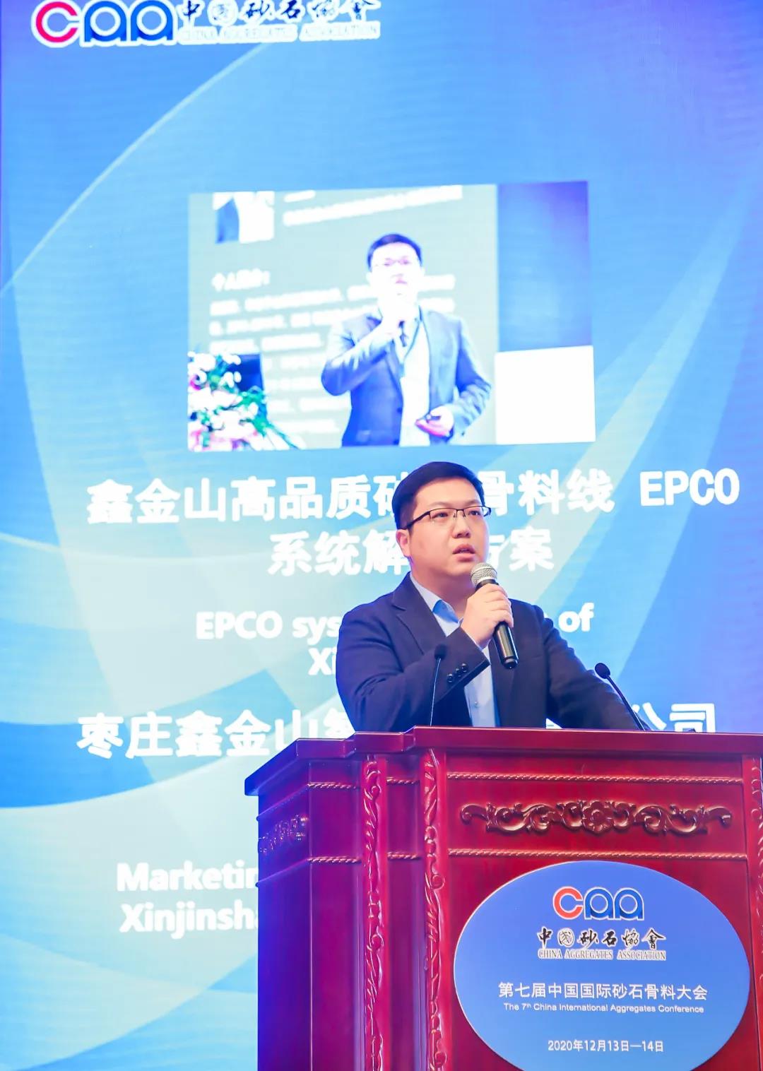 棗莊鑫金山智能裝備有限公司胡振霖作題為《鑫金山高品質(zhì)砂石骨料線EPCO系統(tǒng)解決方案》的主題報(bào)告。作為中國高端砂石裝備制造商,鑫金山根據(jù)市場趨勢和客戶需求為礦山企業(yè)提供現(xiàn)場勘探、設(shè)計(jì)、礦石檢測、裝備加工制造、安裝、運(yùn)營服務(wù)等EPCO總包模式,以高端化、智能化、規(guī)?;氖袌龆ㄎ?,為客戶提供系統(tǒng)集成服務(wù)。