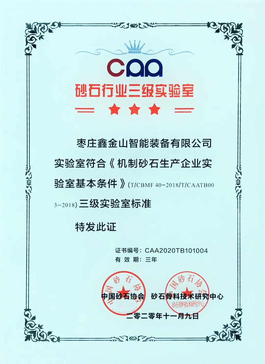 “三級實驗室”只是棗莊鑫金山智能裝備有限公司試驗中心新的工作起點,未來,公司將進一步提高高等級實驗室檢測與研發(fā)水平,不斷提升產(chǎn)品質(zhì)量,使實驗室的各項工作更上一個新的臺階,更好的為砂石企業(yè)提供技術(shù)服務,為砂石行業(yè)的高質(zhì)量發(fā)展和健康有序發(fā)展貢獻力量!
