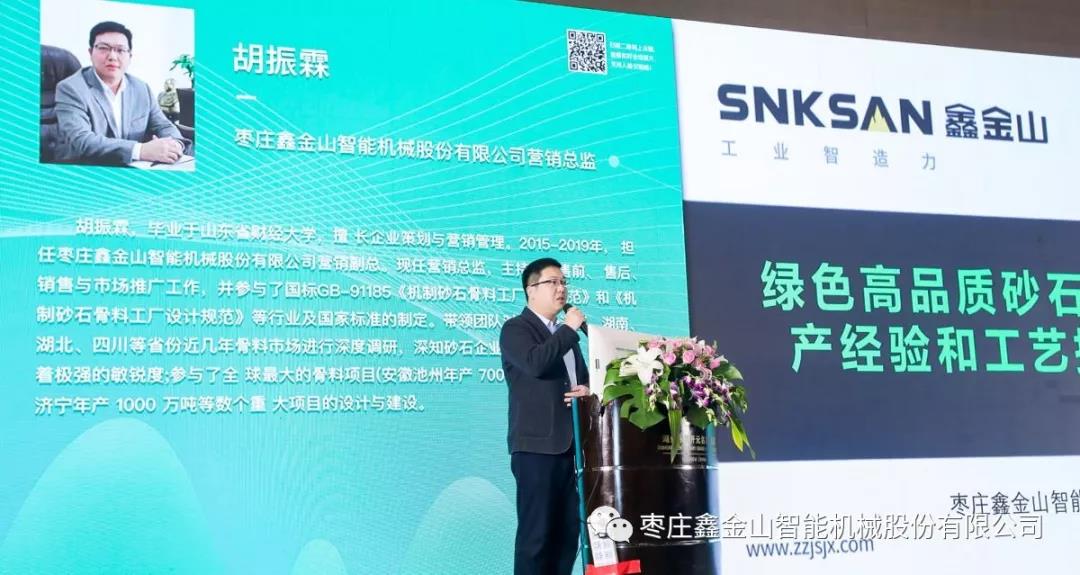 鑫金山運(yùn)營(yíng)總監(jiān)胡總在大會(huì)上作《如何根據(jù)guojia要求打造符合標(biāo)準(zhǔn)的綠色砂石礦山》的主題報(bào)告,介紹了鑫金山智能機(jī)械的基本情況及高效能短流程綠色骨料線的核心優(yōu)勢(shì),并對(duì)綠色礦山建設(shè)提出了看法,胡總表示,綠色礦山需要具備生態(tài)環(huán)保、開采科學(xué)、利用高效、管理規(guī)范和礦地和諧等特點(diǎn)。同時(shí),從設(shè)備配置、工藝設(shè)計(jì)、建設(shè)方式、現(xiàn)代化運(yùn)營(yíng)等方面著重對(duì)鑫金山年產(chǎn)1500萬噸精品砂石骨料線進(jìn)行了詳細(xì)講解。