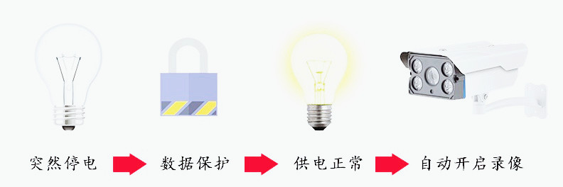 突然斷電,錄像機啟動數(shù)據(jù)保護功能,保證數(shù)據(jù)不丟失,供電正常后,自動開啟監(jiān)控并錄像,無需手動開啟。